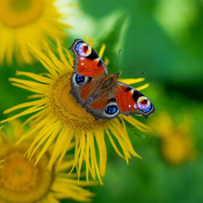 Met open vleugels zijn de 'ogen' zichtbaar die bedoelt zijn om vijanden af te schrikken.