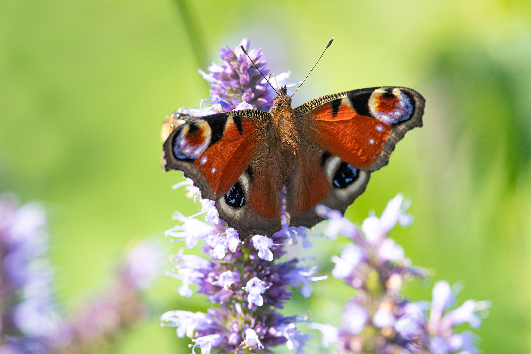Bij de eerste warme zonnestralen komt hij te voorschijn en dan zie je hem regelmatig vliegen in onze tuinen. De eerste generatie vliegt van juni tot augustus, de tweede van augustus tot oktober.