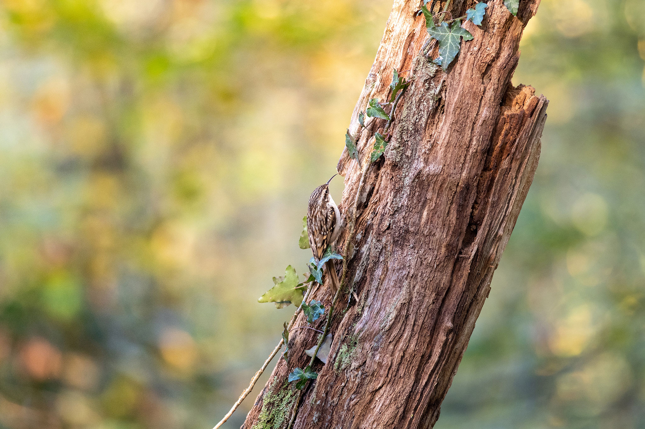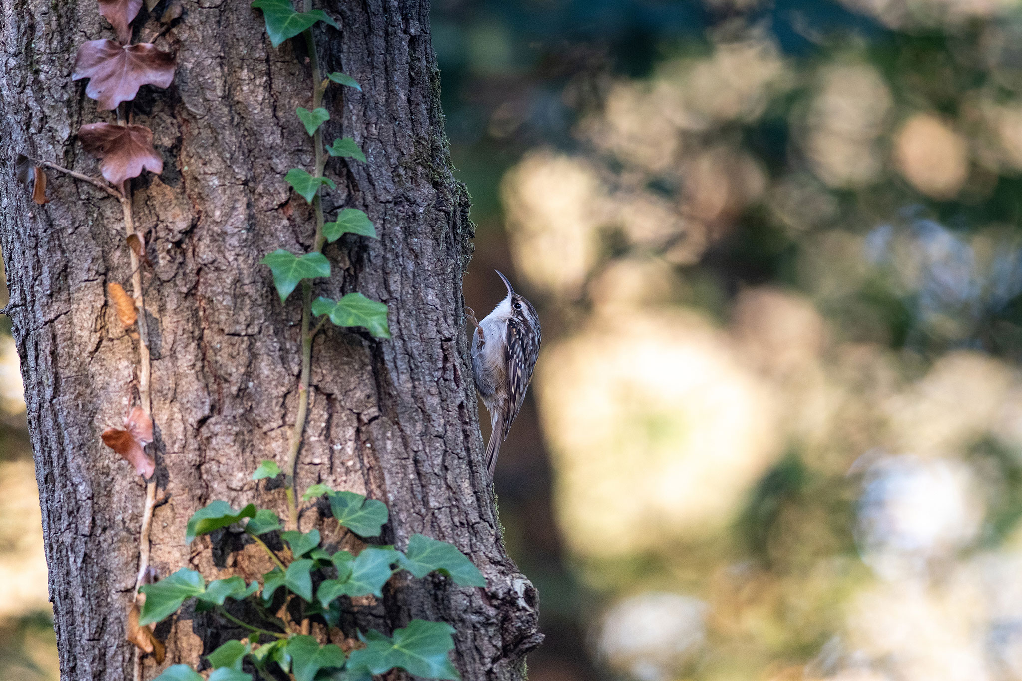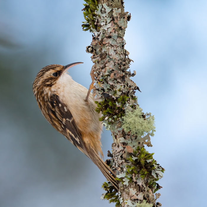 In tegenstelling tot de boomklever gaat de boomkruiper nooit op een stam naar beneden, altijd omhoog!