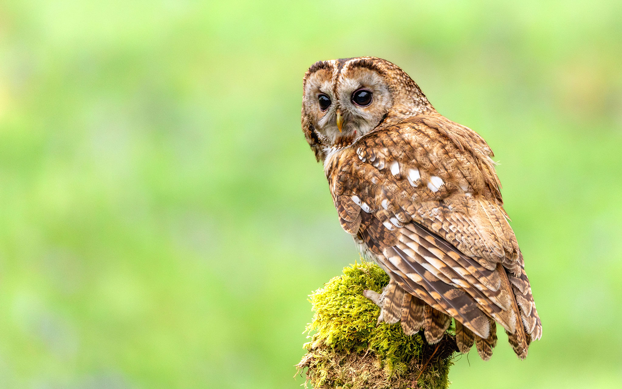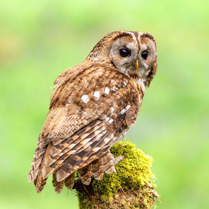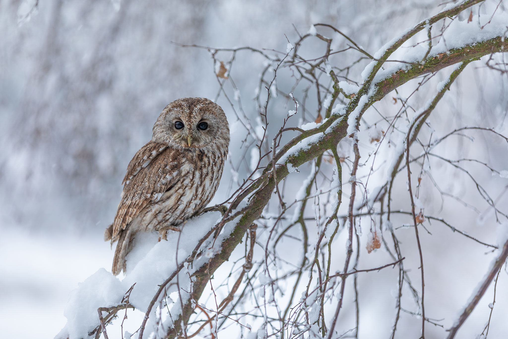 De jongen komen na 28 á 30 dagen uit en de eerste tien dagen laat het vrouwtje ze niet alleen. Deze zijn namelijk in eerste instantie blind. Het mannetje voert voedsel aan, het vrouwtje scheurt stukjes vlees zonder haren en botten van de prooi af. Die houdt ze tegen de snavel van de jongen, zodat ze op de tast het voedsel vinden. Uilen hebben zeer gevoelige tastharen, waarmee ze in het pikkedonker prooien kunnen herkennen. Zolang de jonge uilen bezig zijn met de opbouw van hun bottenstelsel, maken ze gebruik van de kalk in de botten van de prooidieren. Uit onderzoek is gebleken dat in de eerste uilenballen die de jongen uitspugen, vrijwel geen botresten voorkomen.