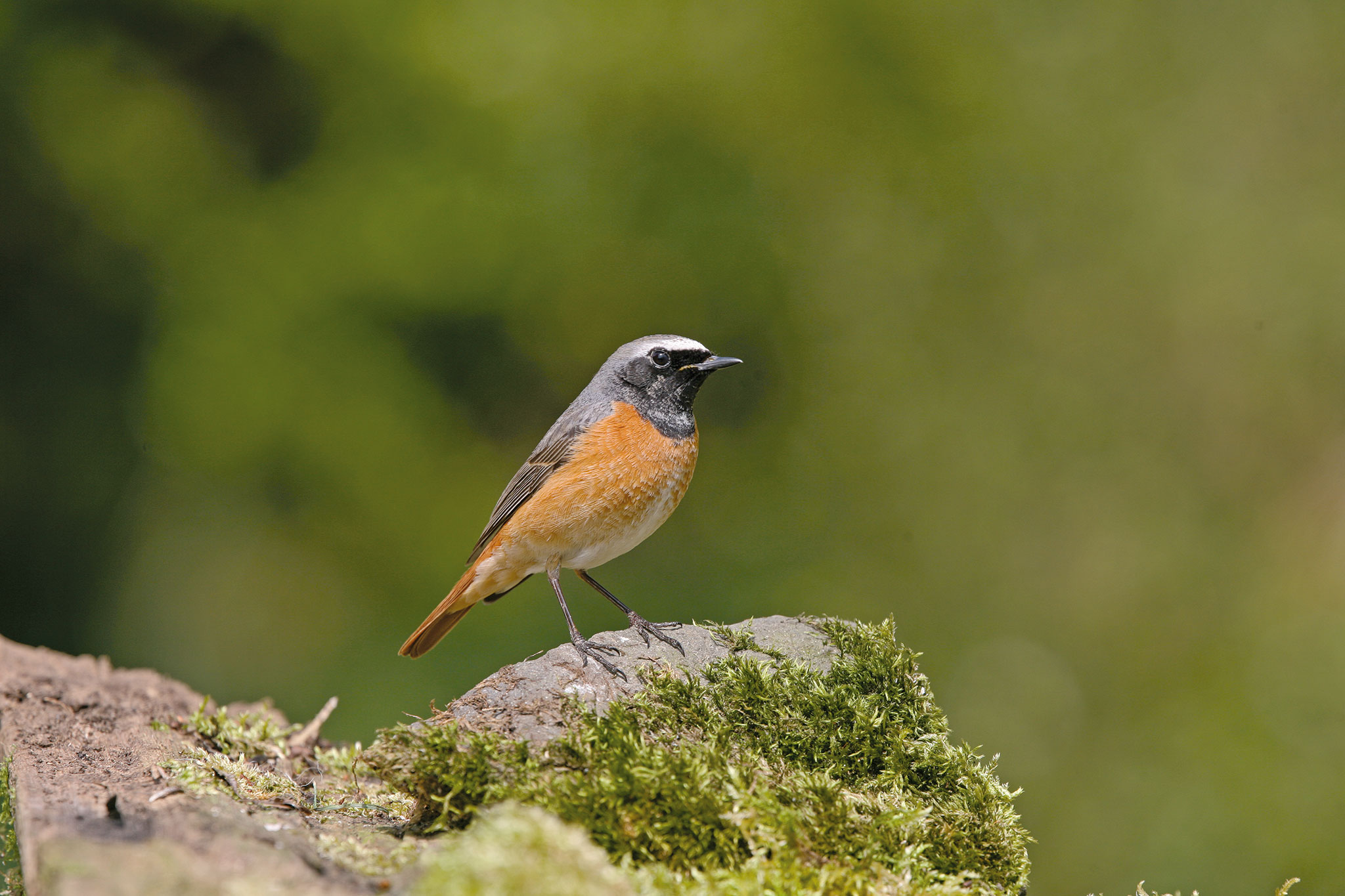 De gekraagde roodstaart (Phoenicurus phoenicurus) is een slanke vogel met net als de zwarte roodstaart een voortdurend trillende roestkleurige/rode staart.