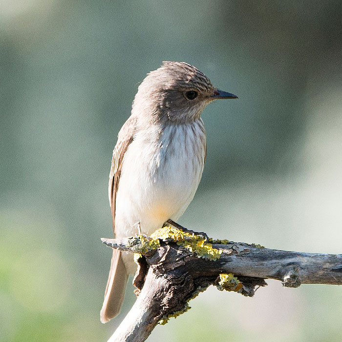 KenmerkenHij is rechtopzittend op een zitpost op de uitkijk naar voorbijvliegende insecten. Hij foerageert op vliegen, bladluizen, bijen, wespen en vlinders. Grauwe vliegenvangers vangen het liefst insecten met de hoogste opbrengst. Een hommel is bijvoorbeeld een grotere prooi als een vlieg, maar de angels dienen verwijderd te worden. Dat kost tijd die de grauwe vliegenvanger liever besteed aan het vangen van andere insecten.
