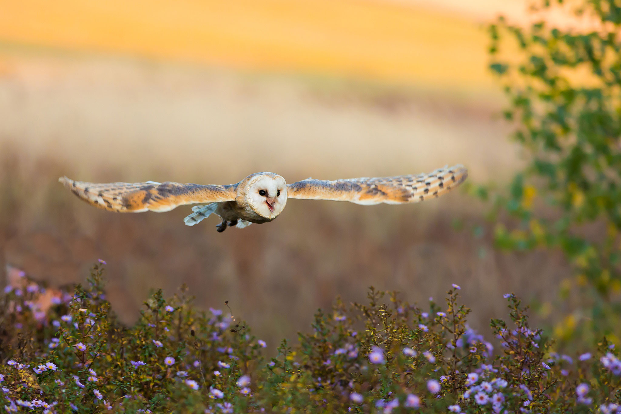De kerkuil jaagt 's nachts en vliegt dan vooral laag bij de grond.