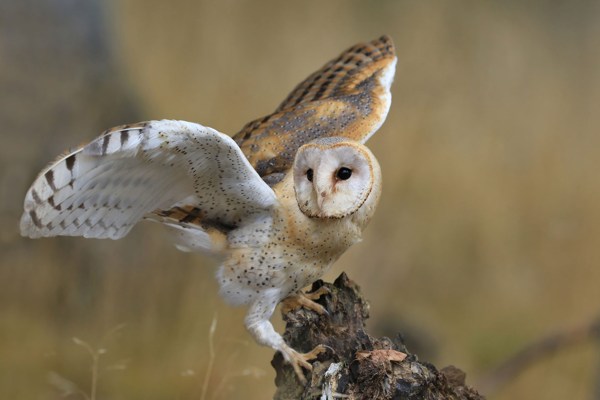 Een uniek kenmerk is de hartvormige witte 'gezichtssluier'.