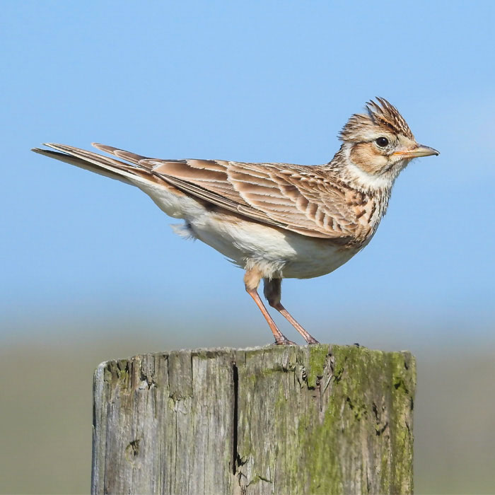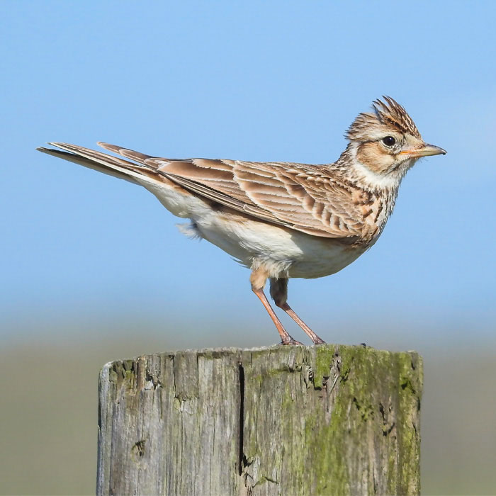 Broedvogel in heel Europa. De veldleeuwerik is een soort dat voorkomt in het open landschap. Ze broeden in graslanden vaak langs slootkanten.