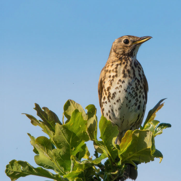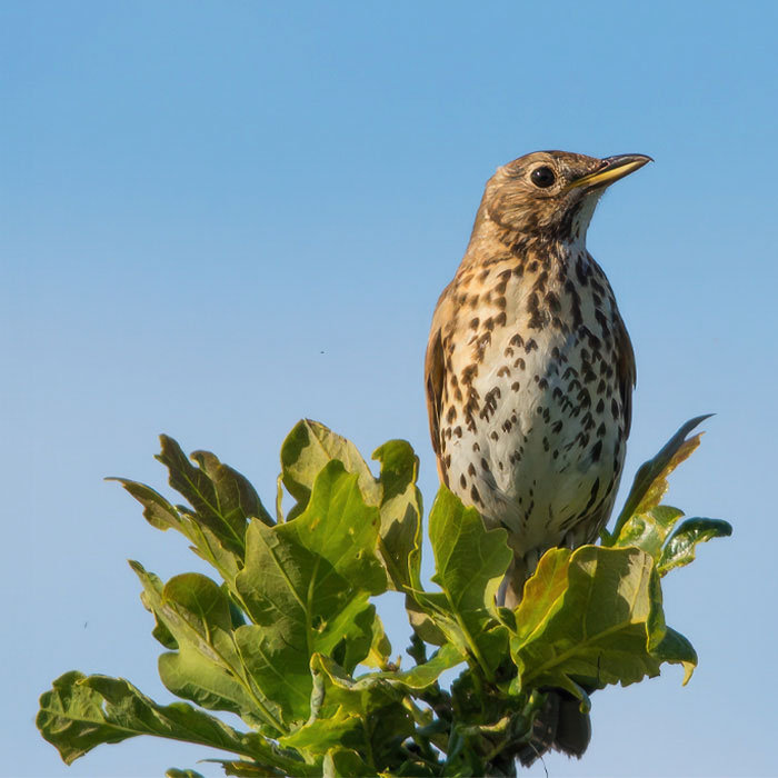 Algemene broedvogel die in bossen, parken en tuinen voorkomt.