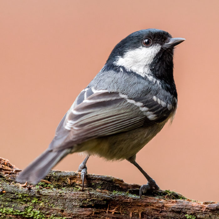 KenmerkenDe kop van de zwarte mees (Parus ater) is relatief groot. Hij heeft een zwarte kop met witte wangen en een witte achterhoofdsvlek. We zien een grijze rug en de onderzijde is grijs-beige. Verder heeft hij twee witte vleugelstrepen. Hij lijkt op een koolmees maar is kleiner en heeft geen geel en geen zwarte middenstreep. Bij opwinding kan hij zijn kruinveren opzetten.
